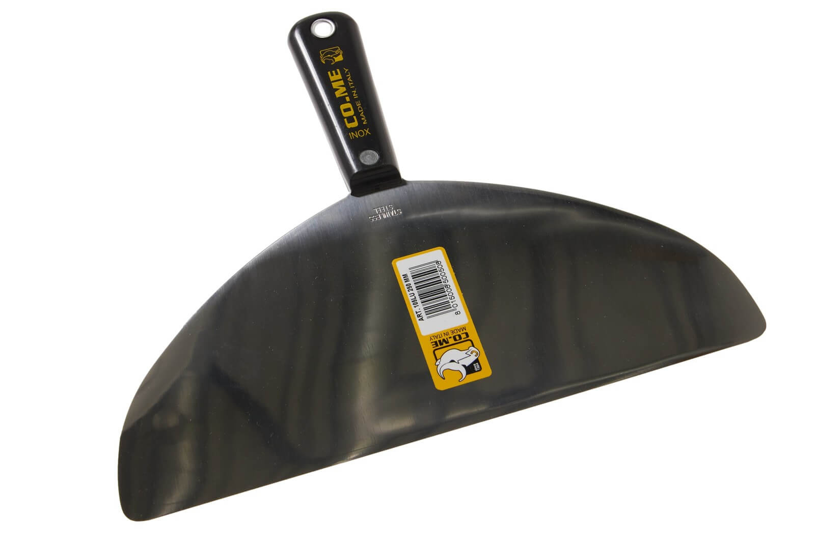Het CoMe plamuurmes met afgeronde hoeken, vervaardigd uit roestvrij staal, is een essentiële tool voor professionele afwerking en nauwkeurig plamuurwerk. Dit plamuurmes is speciaal ontworpen voor soepelheid en precisie, waardoor het ideaal is voor het aanbrengen en gladstrijken van plamuur/pasta op diverse oppervlakken. De afgeronde hoeken minimaliseren de kans op het beschadigen van het oppervlak en maken het gemakkelijk om strakke hoeken en moeilijke plekken te bereiken zonder in te boeten aan afwerkingskwaliteit. Het duurzame roestvrijstalen blad zorgt voor een lange levensduur en weerstand tegen corrosie, terwijl het ergonomisch ontworpen handvat comfort biedt tijdens langdurig gebruik, wat dit plamuurmes een favoriet maakt onder professionals die streven naar perfectie in hun werk.