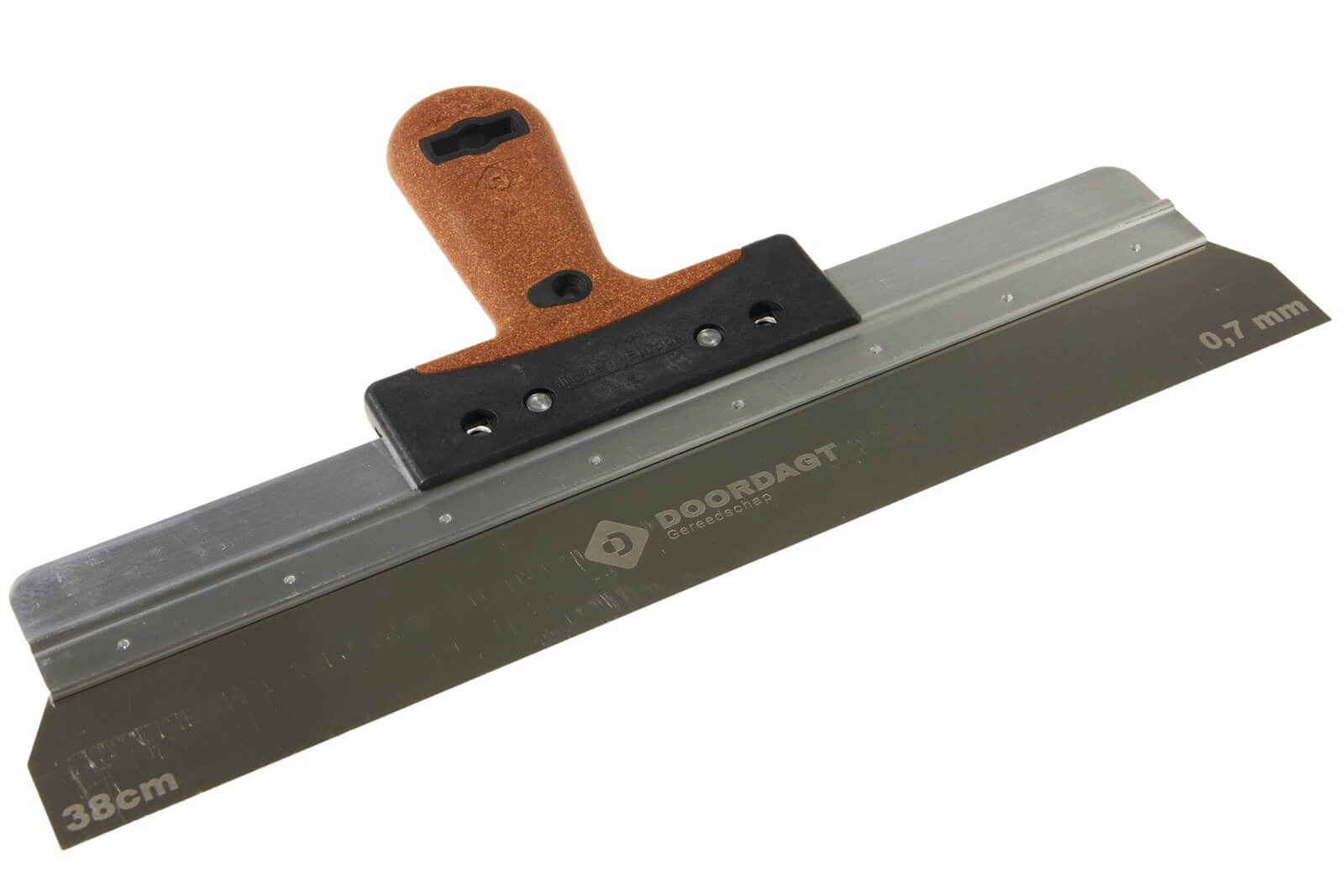 De DD-PK Gipsmes 0,7 mm RVS 38 cm van de DOORDAGT-PREMIUM lijn met een kurken handvat combineert vakmanschap met duurzaamheid en ergonomisch design. Dit gipsmes, uitgevoerd in roestvrij staal met een bladdikte van 0,7 mm, is ontworpen voor professionals die precisie en kwaliteit eisen in hun gipsafwerkingen. De lengte van 38 cm is ideaal voor het bereiken van gladde, naadloze afwerkingen over een breed scala aan oppervlakken. Het kurken handvat biedt niet alleen comfort tijdens langdurig gebruik, maar zorgt ook voor een uitstekende grip, waardoor de gebruiker volledige controle behoudt over het gereedschap. Dit gipsmes is de perfecte keuze voor vakmensen die op zoek zijn naar een gereedschap dat prestatie en milieuvriendelijkheid combineert.