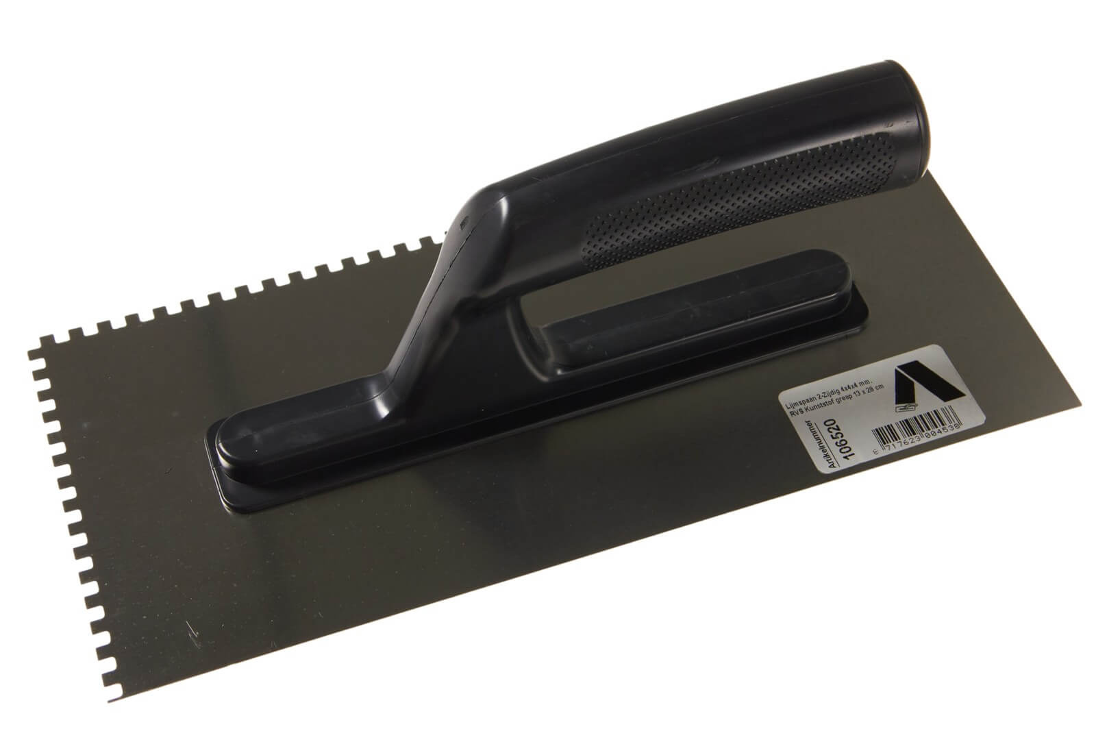 Lijmspaan 280x130mm, 4x4x4mm 2-Zijdig, RVS, Kunststof greep