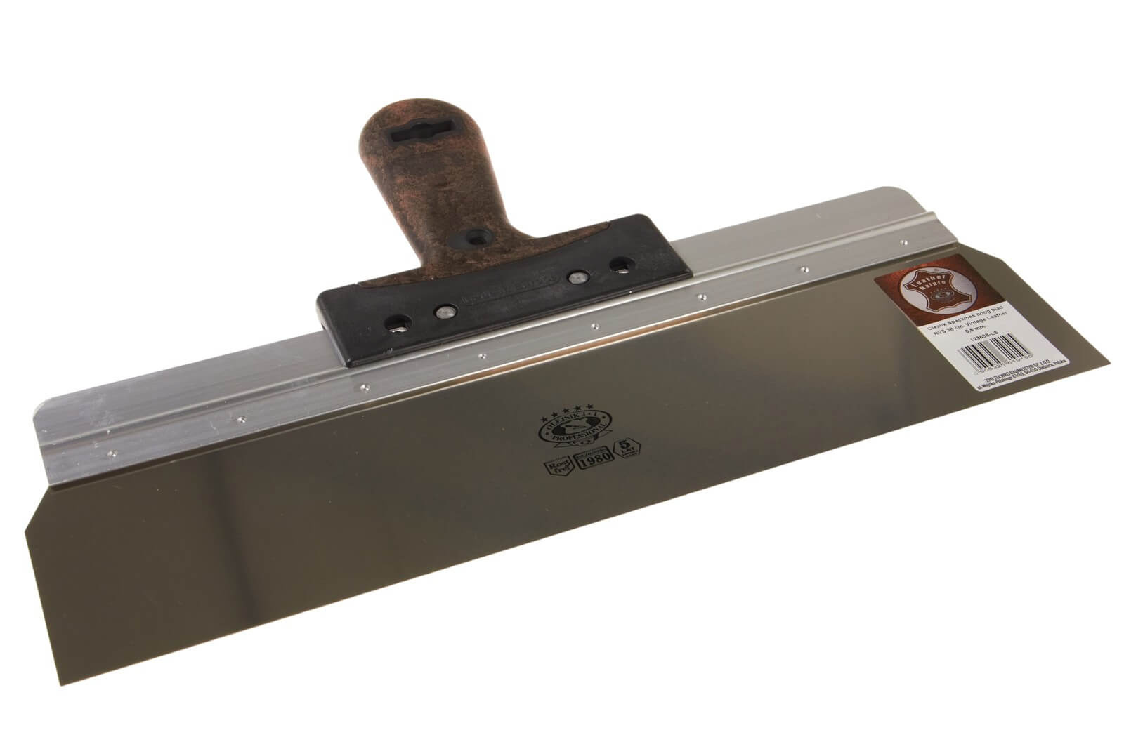 OLEJNIK, Spackmes 38cm, RVS, Hoog blad, Vintage Leather greep, 0,5mm
